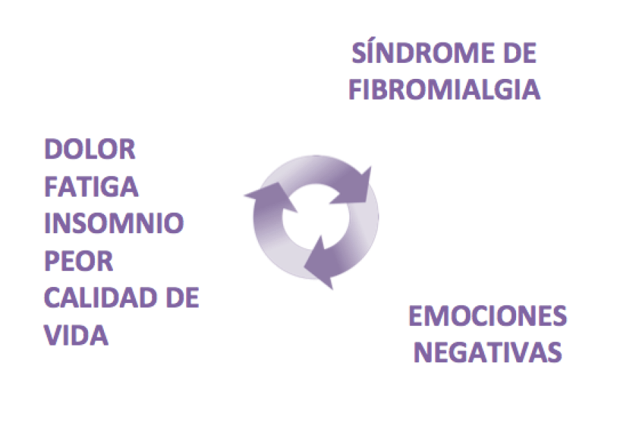 Las emociones negativas (ira, miedo, ansiedad, tristeza, asco…) en las personas con síndrome de fibromialgia empeoran el dolor, la fatiga, el insomnio y producen peor calidad de vida. Ello produce más emociones negativas que aún empeoran más los síntomas. Es un círculo vicioso.